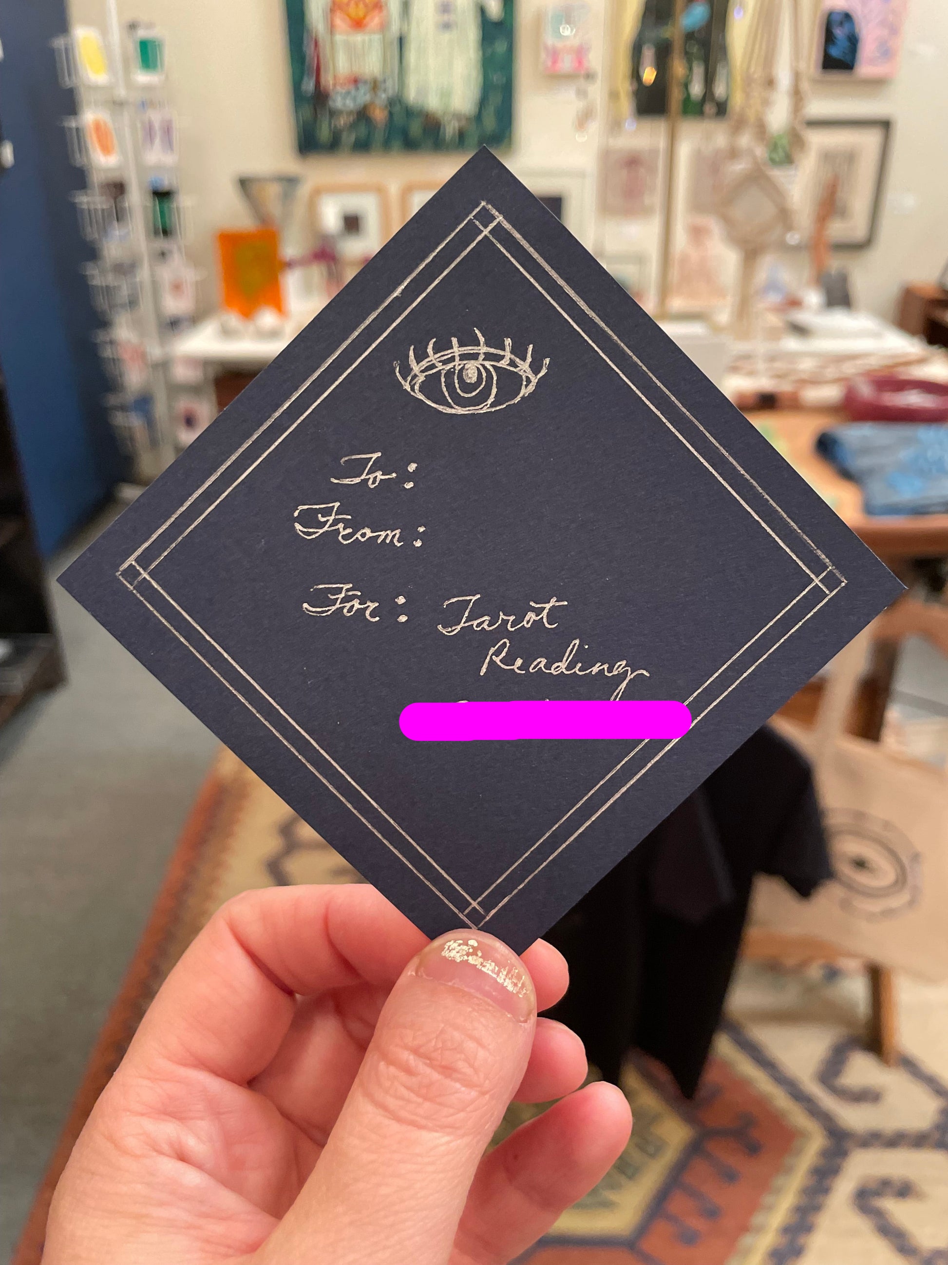 A $75 gift certificate covers a 55min. in person Tarot Reading
