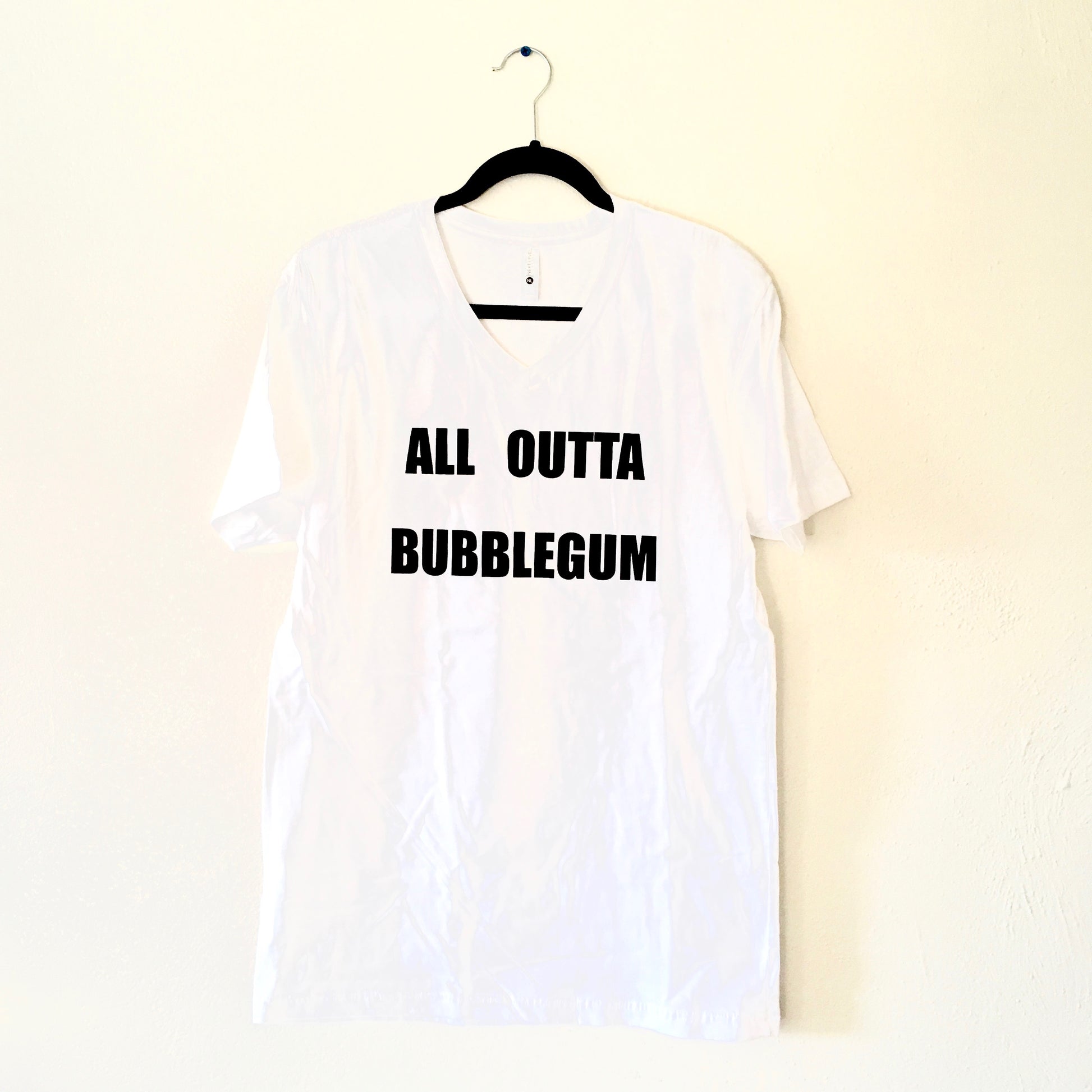 A reference to the John Carpenter film, "They Live", about a robotic, reptilian class of beings that live amongst humans and are controlling them and influencing their perception... At the pivotal moment in the film when the hero begins to take a stand and fight back, he declares, "I have come here to kick ass and chew bubblegum...and I'm all outta bubblegum".