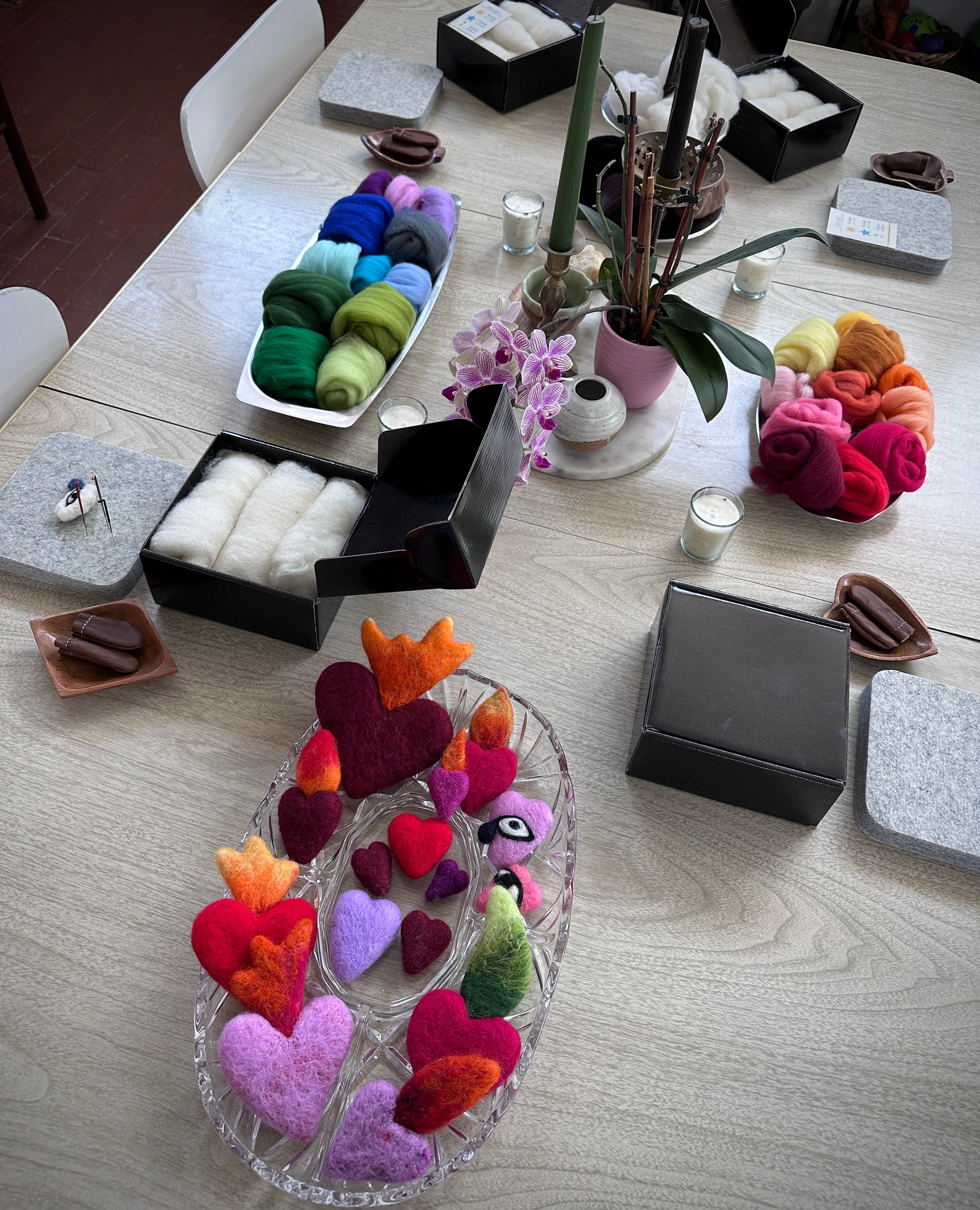 meditations & fundamental needle felting techniques while crafting 3D objects from natural wools, in the form of sacred hearts, that can be used as altar objects, ornaments,