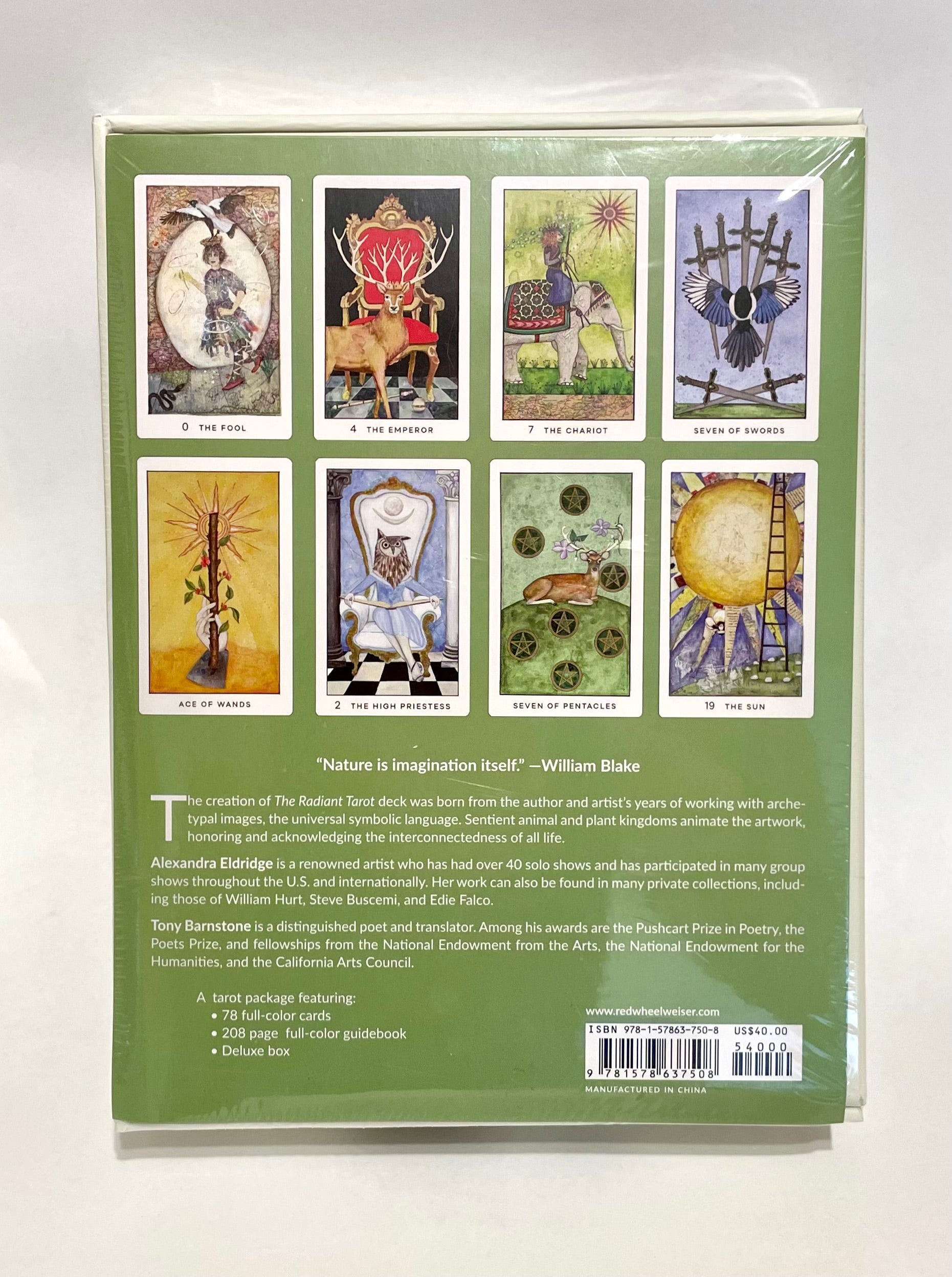 The words of Rainer Maria Rilke “the animal world?beholds the Open” invite us to understand this renowned poet’s insistence that “one must know animals, must feel how the birds fly, and know the gestures with which small flowers open in the morning.” William Blake speaks of “animal forms of wisdom,” says that “Nature is Imagination itself.” It is the creative energy of these master artists drawn from the natural world that inspire The Radiant Tarot.