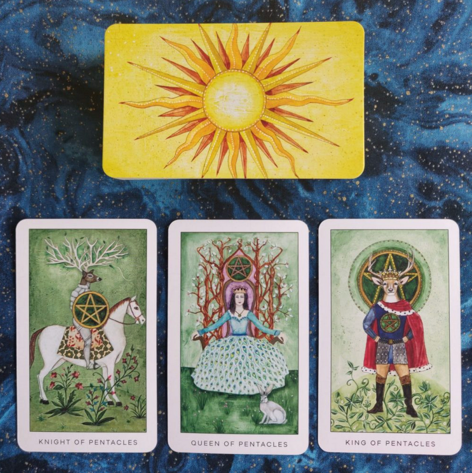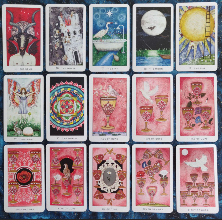Richly painted, at times fantastical, fine art images of plants, animals, and people co-inhabit a dream-like world guiding tarot readers down a radiant path of awakening creativity and personal growth.